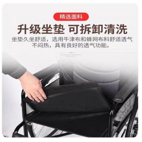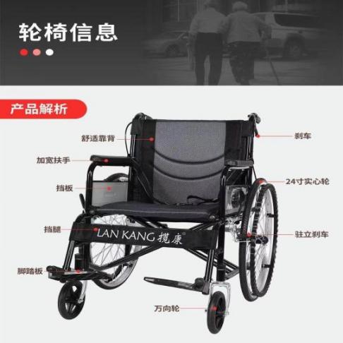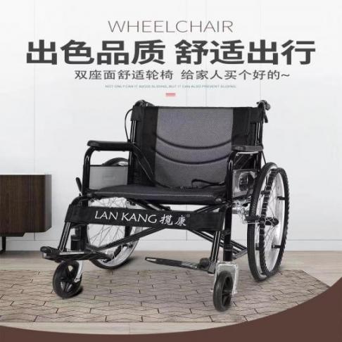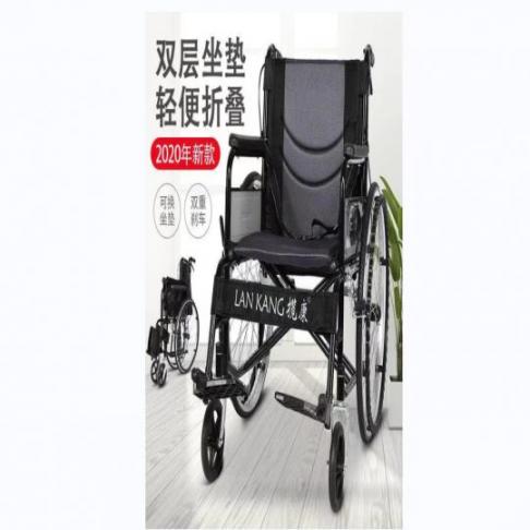 揽康手动轮椅10014可折叠双面坐垫可拆卸双重刹车安全保障