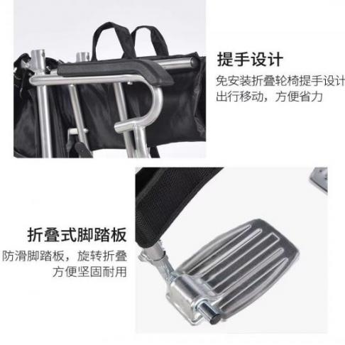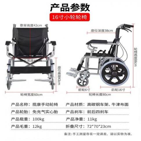 揽康便携式手动轮椅10004可折叠携带重11公斤前后4刹折背设计